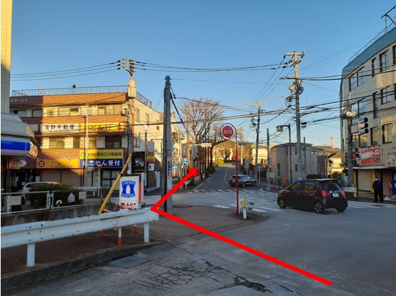 4.階段を下りたあと、道なりに左方向に進んでください。